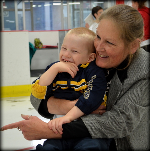 Little Kellen was there with his mom and dad, and Laura.  Laura has been involved with Kellen’s family many months.  She is providing counseling to help the family deal with the stresses of raising a special child.  You see, Kellen with his sweet smile, has Angelman Syndrome.  His disability  had kept him isolated from the family up until recently.  He needs to have support when standing and would use anything to pull himself up, often endangering himself.  For his own safety, his parents had to limit him to one nearly empty room.  The family was “adopted’ this past Christmas and given an enclosure system that was placed in the family room.  Now Kellen can be an active part of the family without causing himself harm.